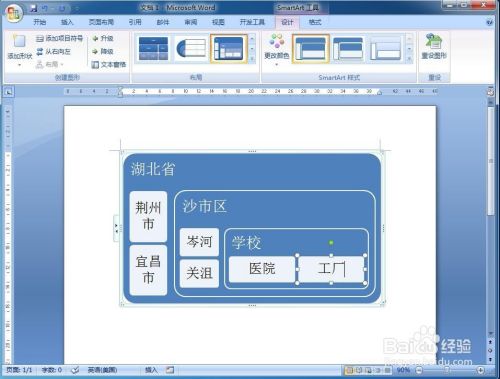 选择一种SmartArt样式,添加到嵌套方针图中;