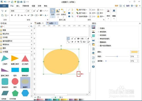 用鼠标移动右下角的小矩形,调整好椭圆的大小;