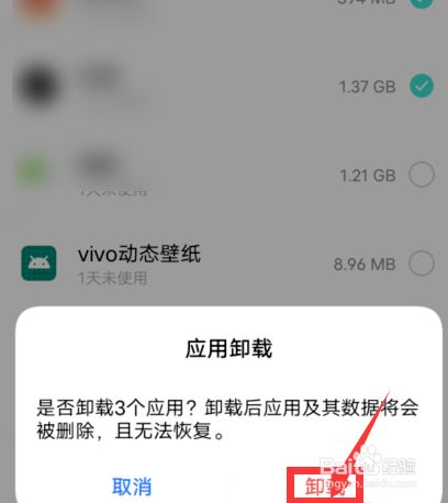 5、勾选后,点击下方的卸载选项。