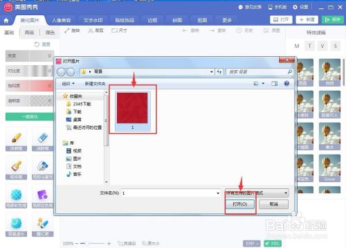 选择一张布景底图,然后按打开;