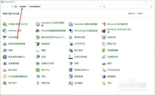 在所有所有节制面板项中选择节制面板