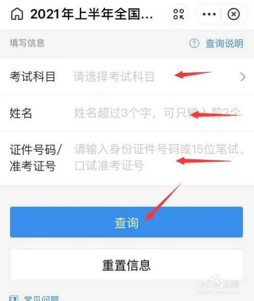 返回填写信息界面,填写好信息后,点击【查询】按钮,就可以知道准考据号了。