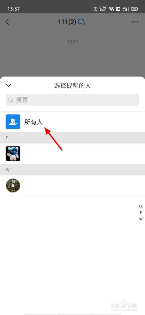 呈现选项,点击所有人。