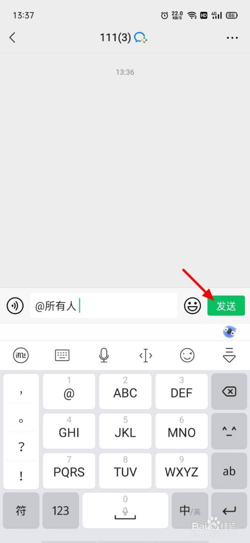 在群聊页面,输入艾特。