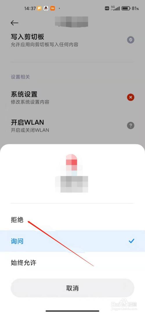 6、进入WLAN设置,点击拒绝即可