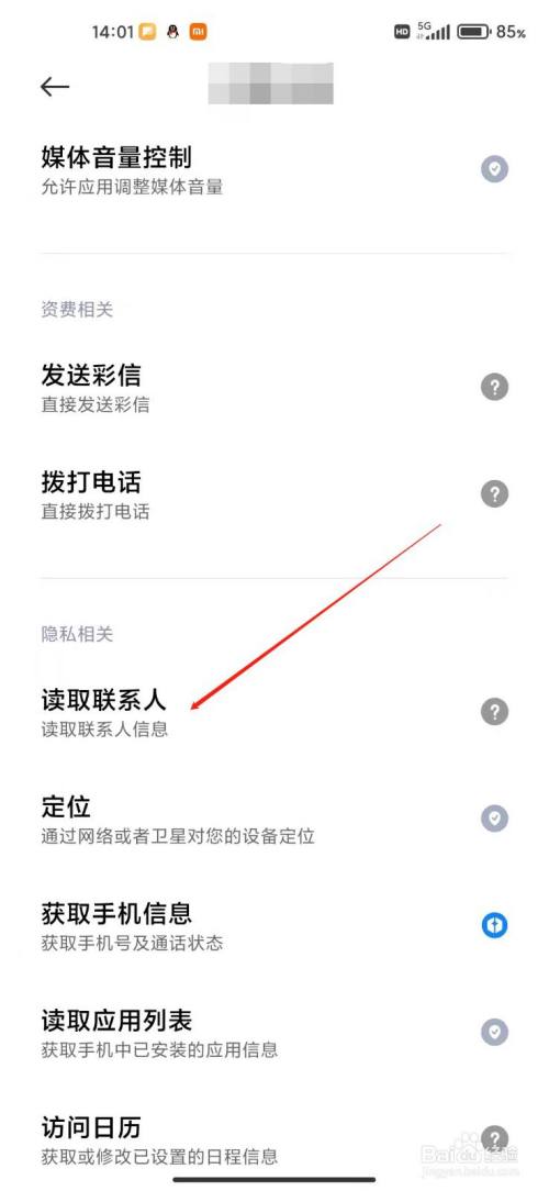 6、在读取联系人设置里点击拒绝即可