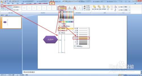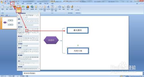 起头——画图,选择左大括号、右大括号、圆角矩形和箭头,设置下级分支和总结部门——外形填充选择无填充,轮廓粗细为2.25磅。