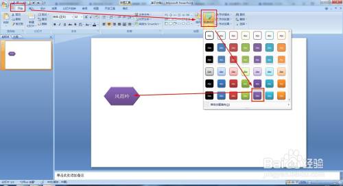 起头——快速样式——选择紫色的强烈结果——输入题目文字:风雨吟。