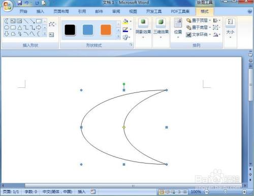 按下鼠标左键不放,拖动鼠标,建立好一个弯月形;