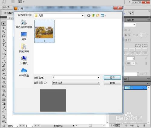 按ctrl+o,找到并选中要处置的图片,按打开;