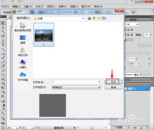 按ctrl+o,选中一张图片,按打开;