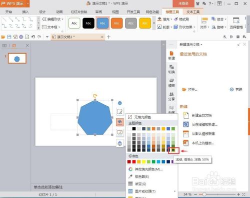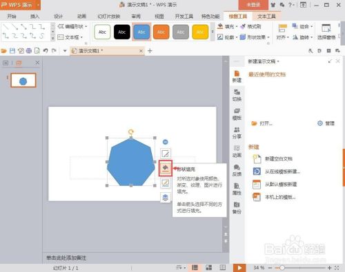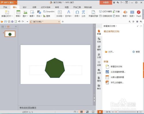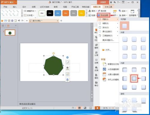 我们就在wps演示中建立好了一个绿色带暗影的七边形。