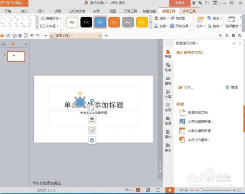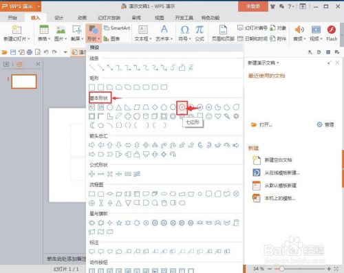 打开wps演示,进入其本家儿界面中;