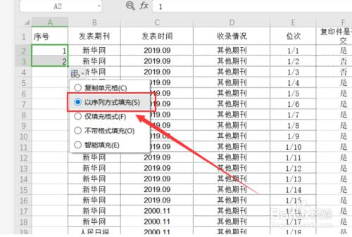 系统默认的是第1个选项复制单位格,下面给它改为第2个选项,以序列体例填充。