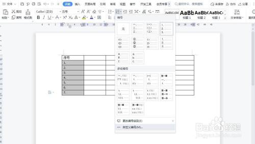 在起头选项卡,选编号,自界说编号。