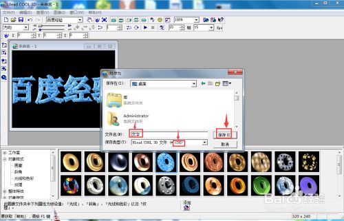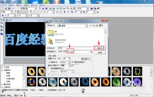 输入文件名,如文字,这时所选的文件类型为c3d,它是ulead cool 3d的源文件,可以编纂点窜;