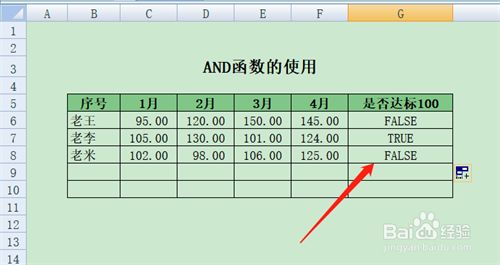 在G6空格里输入=AND