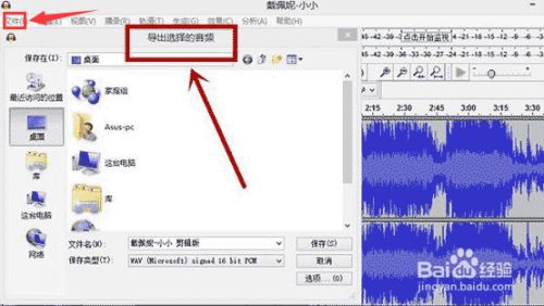 4.点击左上角的文件菜单,点击导出选择的音频按钮