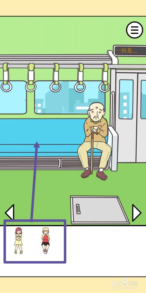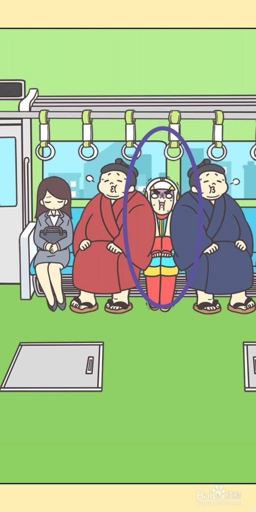 【弥补终局】若是不让其他乘客先坐下,直接点击男本家儿让他坐下,男本家儿就会被两个大胖子挤扁,游戏掉败。