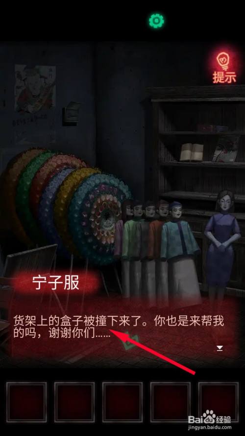 之前的女纸人呈现,并将货架上的红色密码盒子撞了下来。