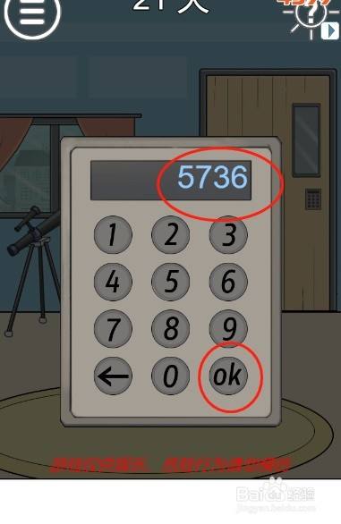 工具/原料联想小新13window10方式/步骤1首先打开房间里面的柜子2然后拿到柜子里面的天文千里镜3接着把天文千里镜放到三脚架上面4然后点击天文千里镜查看远方的场景5接着摆布切换天文千里镜看到的场景6经由过程三个窗户上面的数字获得密码“5736”7接着点击房门上面的密码锁8最后输入密码“5736”就可以顺遂过关了END