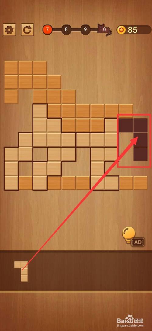 将第二块简单拼图移动到方块拼图LV.7的靠右下方缺口