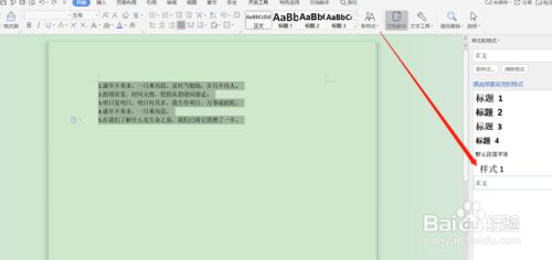 最后鼠标选中所有文本内容,再点击“样式1”,会发现文档中的文本格局已点窜完当作。