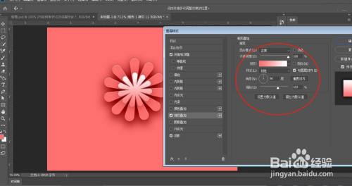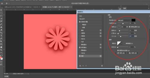 7、点击投影,选择线性加深,不透明度25%,其他数值稍作调整,这样剪纸风花瓣就做好了;如图