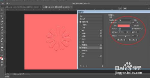 2、归并图层,右击选择图层样式,点击斜面浮雕,深度1,正片叠底选择红色;如图