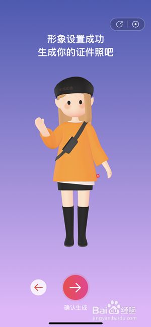 呈现相关提醒,设置您的形象,摆布切换选择造型,形象设置当作功,生当作您的证件照。