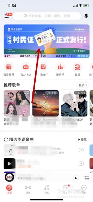 打开网易云音乐,点击上方的村民证正式刊行banner。