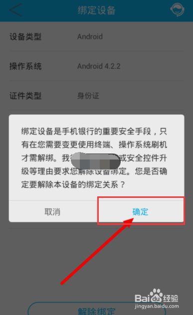 在农村合作信用社手机银行客户端解绑设备操作扣问确认弹窗中,选择“确定”按钮即可。