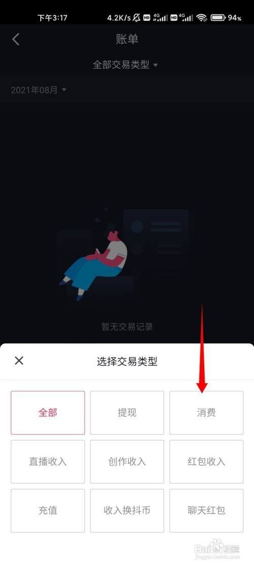 点击底部列表中的消费选项。