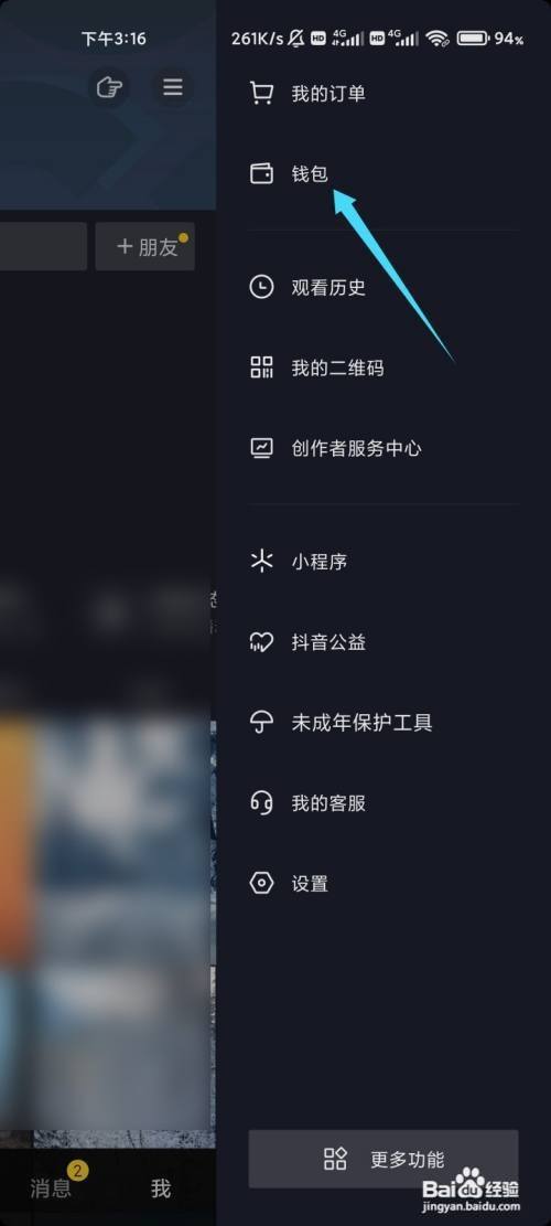 点击菜单中我的钱包的选项。