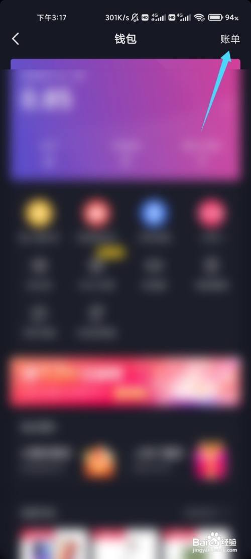 点击右上角的账单选项。