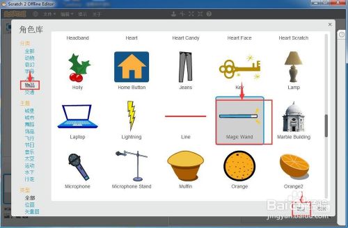 在脚色库中点击物品类别,选中魔术棒后按确定;