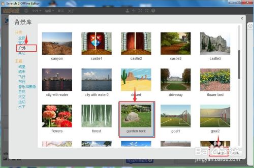 3、点击从布景库中选择布景,添加花圃布景。