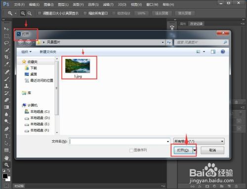 按给组合键ctrl+O,在打开窗口选中要处置的图片,然后按打开;