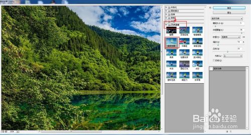 2、点击滤镜中的滤镜库,选择艺术结果文件夹;