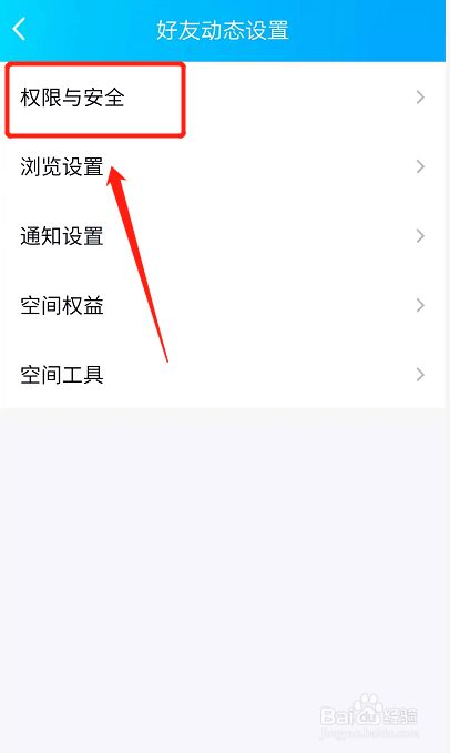 在页面中点击权限与平安。