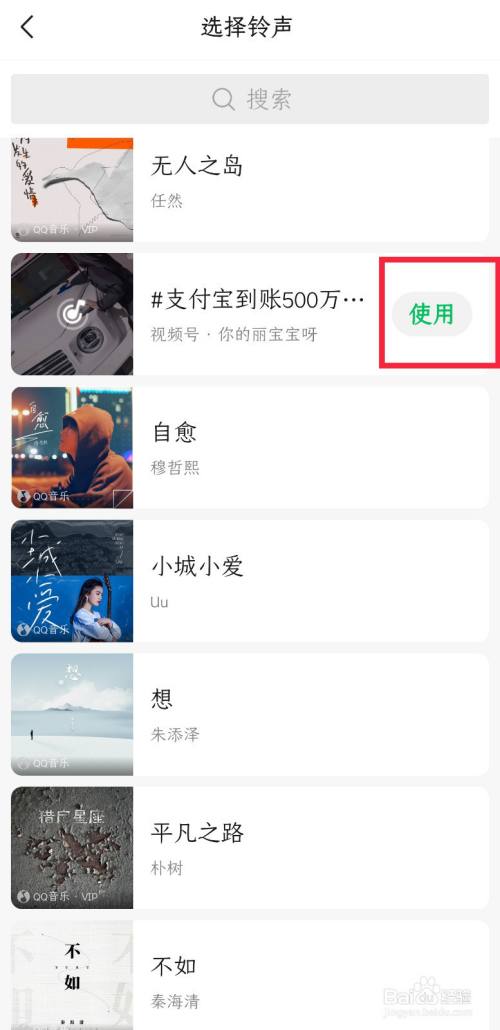 打开如下图界面,可以看到微信中包含了良多铃声,滑脱手机屏幕,点击选择本身需要的铃声,然后点击铃声后面的利用按钮