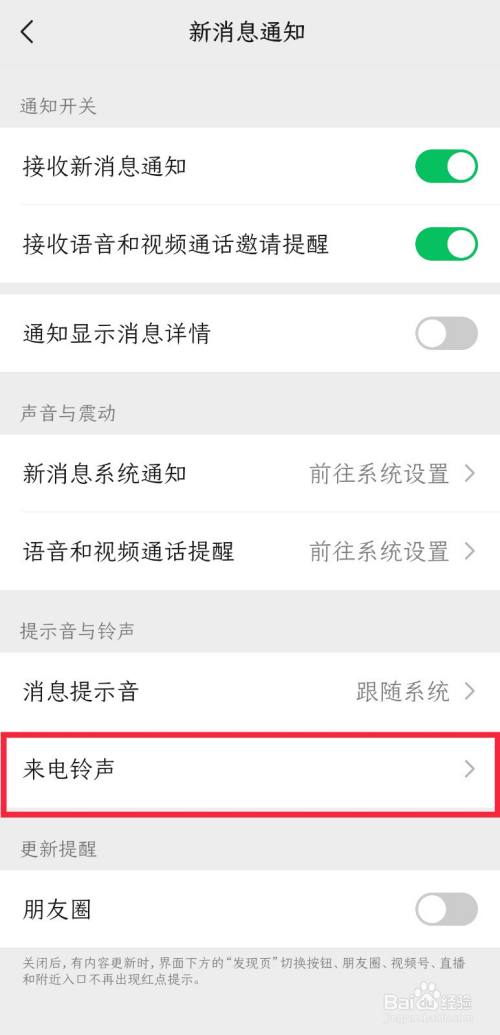 打开如下图界面,选择界面中的新动静通知选项,点击打开