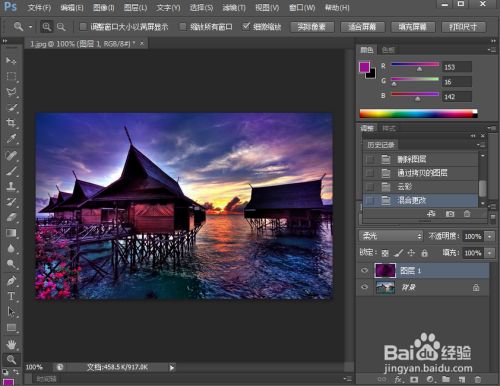 将前景色设为紫色,点击滤镜菜单,在衬着中点击云彩;
