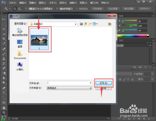 按ctrl+o,在打开窗口选中一张图片,按打开;