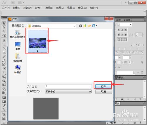按组合键ctrl+o,找到并选中需要处置的图片,点击打开;