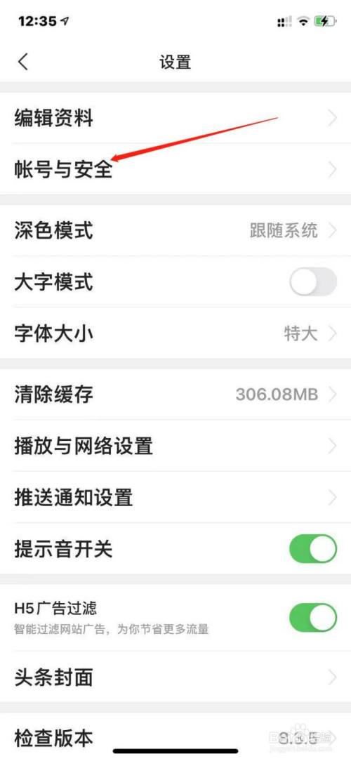 点击【帐号与平安】