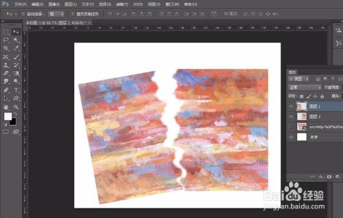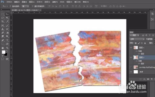 最后,我们点击图层面板【fx】-【投影】,给两部门图像都加上投影,这样一张扯破结果图片就完当作了。