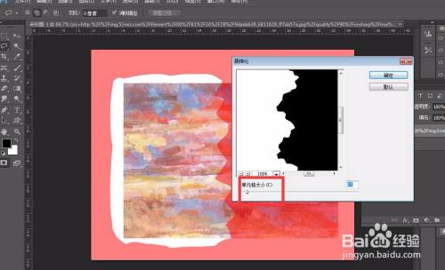 用左侧东西栏的套索东西,对照片进行初步扯破结果的勾勒,按键盘上的Q进入快速蒙版模式,点击【滤镜】——【像素化】——【晶格化】。