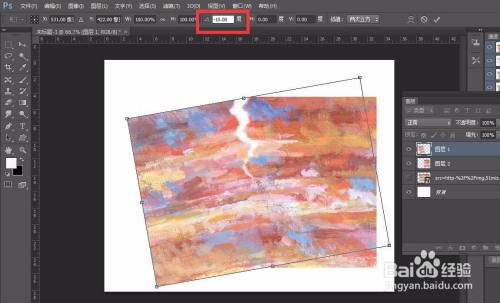 埋没初始照片,我们选择复制选区的图像,按ctrl+t扭转图像,然后稍微平移,做出下图结果。