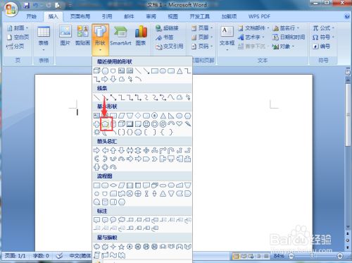 点击插入,选择外形东西,在根基外形中点击五边形;